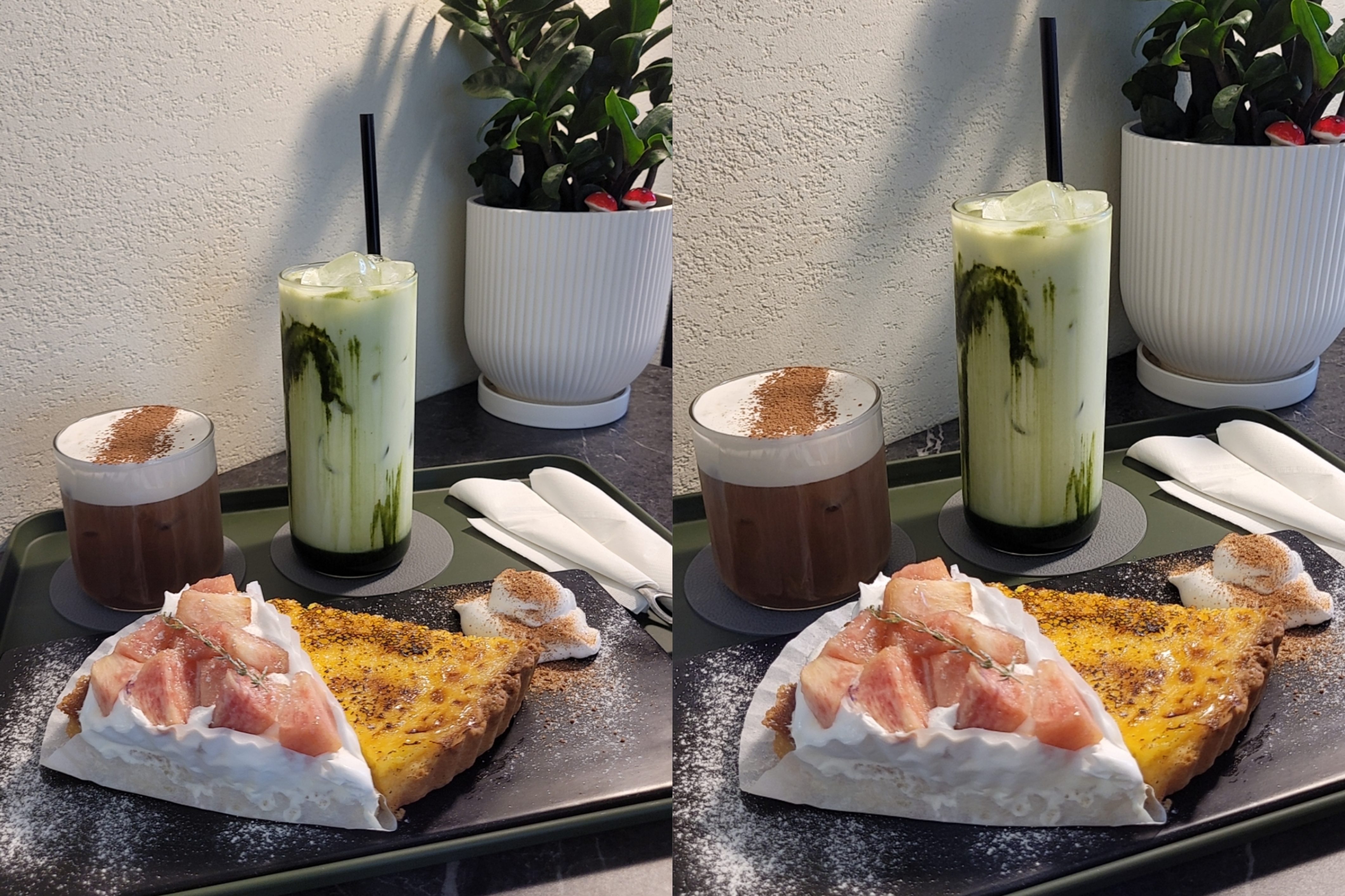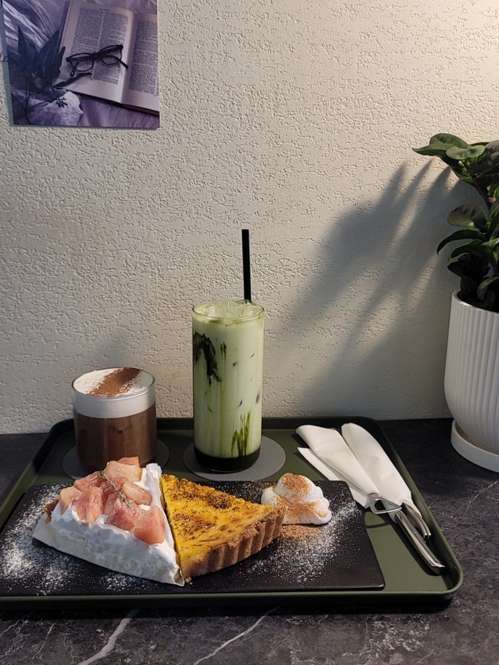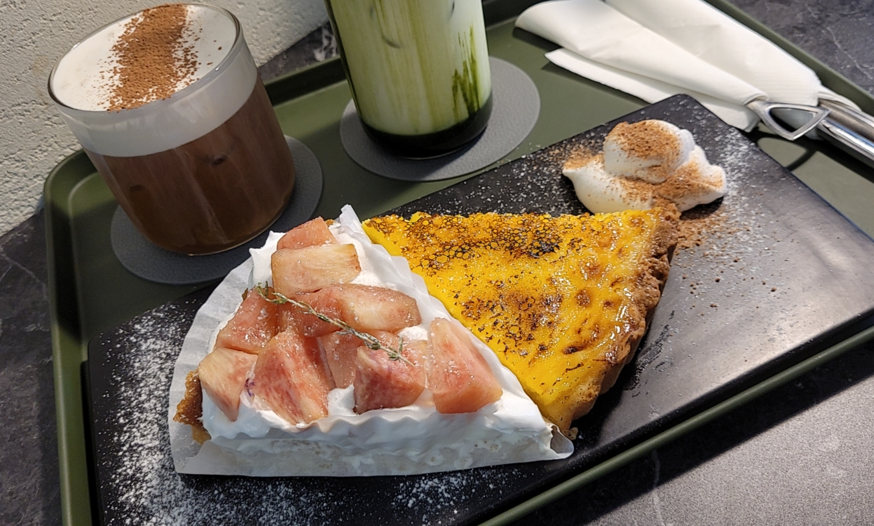 아인슈페너 말차라떼 복숭아 에그타르트 시켰고