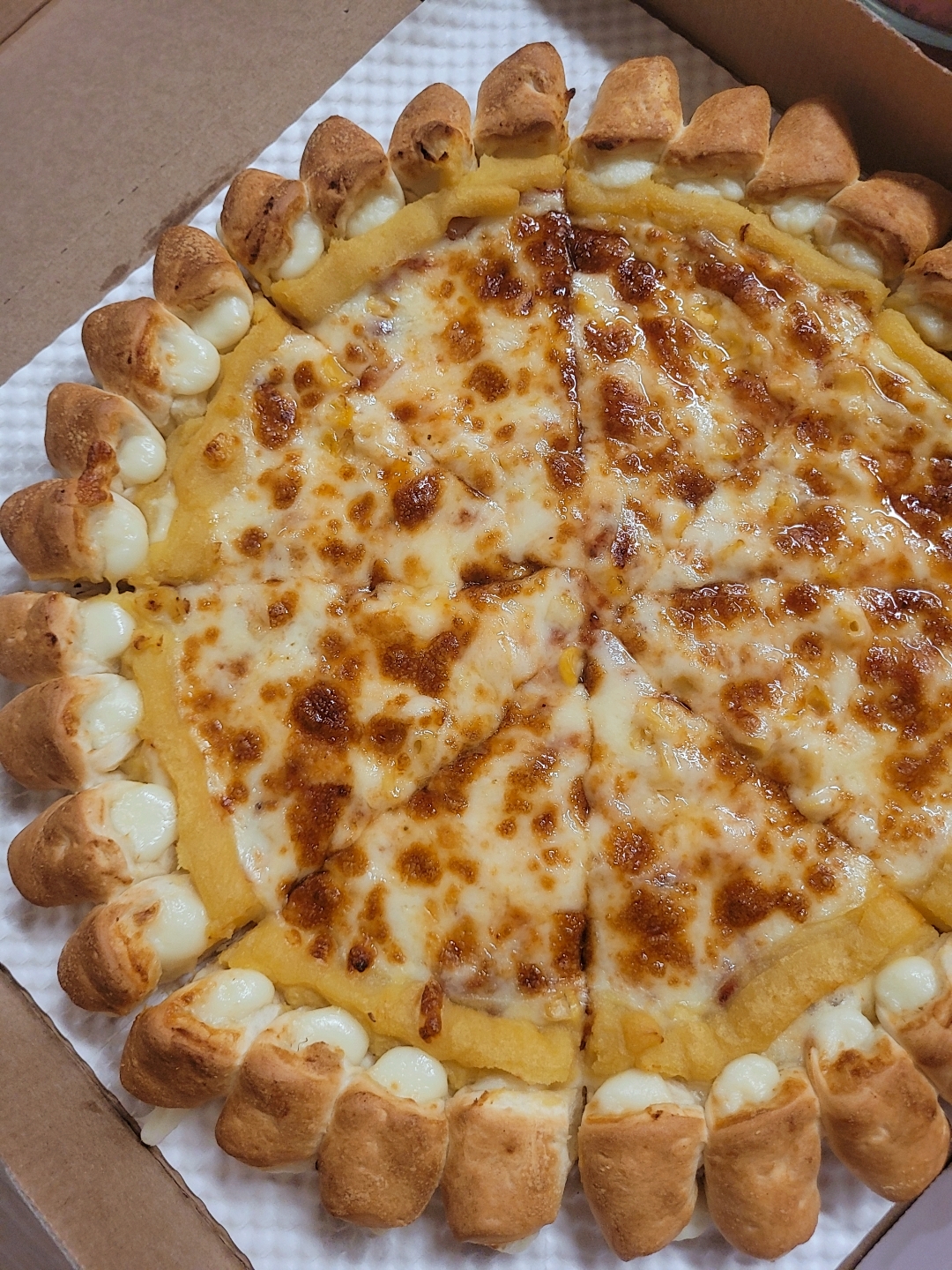 피자스쿨 치즈피자에 치즈바이트 플러스 고구마 무스 추가